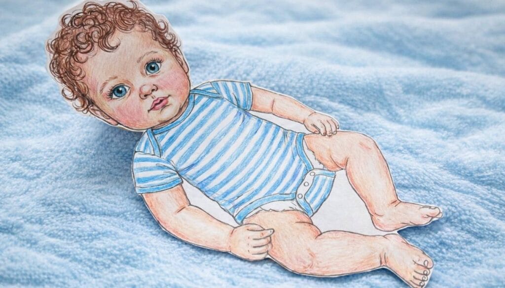 O Bebê Reborn de Papel nada mais é do que uma evolução moderna das Paper Dolls. A grande diferença está no estilo: os desenhos buscam traços mais fofos e semelhantes a bebês de verdade, com dobrinhas, sombreamento e expressões faciais.