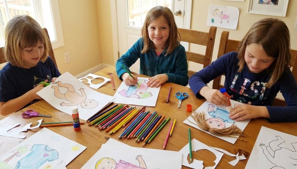- Lápis de cor e Canetinhas: Para dar vida e cor à pele e roupinhas.