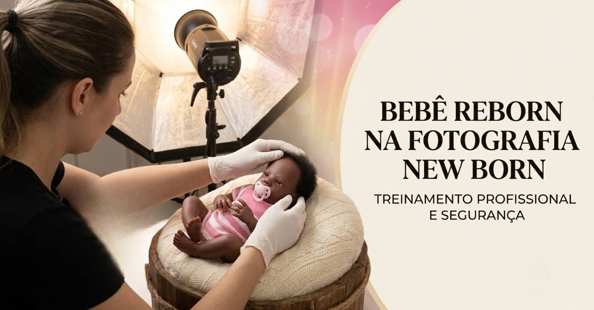 1. Qualquer boneca serve para treinar fotografia newborn? Não. É ideal usar um bebê reborn realista, com peso e articulações semelhantes a de um recém-nascido, para que o treino de posicionamento seja efetivo.