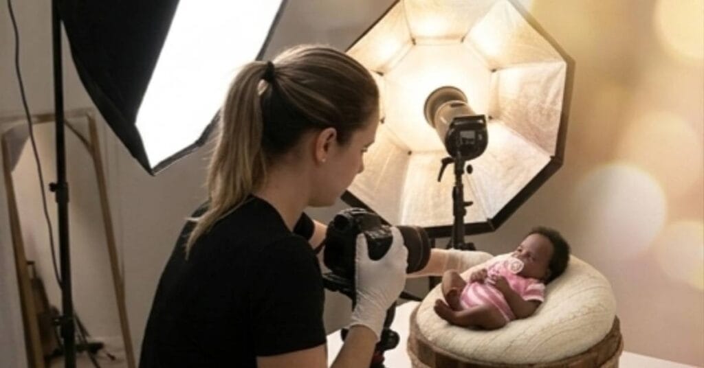 A iluminação é o coração da fotografia. A pele de um recém-nascido é muito sensível e reflete a luz de maneira única. Treinar com um bebê reborn que possui pintura com técnica da arte reborn (que inclui veias, manchinhas e texturas de pele) ajuda a configurar o seu esquema de luzes.