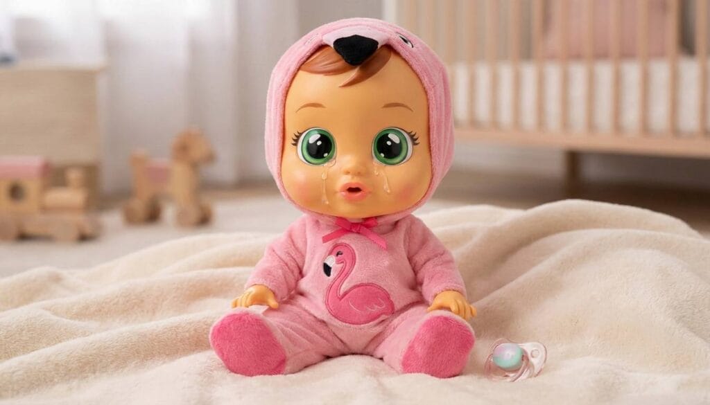 Diferente de outras bonecas tradicionais, o foco aqui é o cuidado e a empatia. A criança assume o papel de cuidadora, precisando acalmar o bebê para que ele pare de chorar.