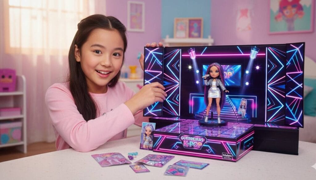Essa integração entre o físico e o digital é uma tendência forte para brinquedos em 2026, e as Guerreiras do K-Pop saíram na frente.